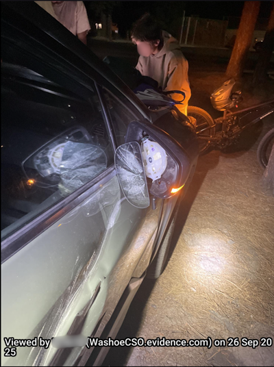 On September 17, 2025, Washoe County Sheriff’s Office deputies responded to the intersection of Village Parkway and Alder Avenue, Incline Village for a report of a vehicle crash involving a motorcycle. Deputies arrived on scene and observed a gray Subaru with damage to the passenger’s side door. After speaking with the juvenile driver of the vehicle, he informed deputies that the person who hit him was also a juvenile and had been riding on a blacked-out motorbike. The juvenile on the motorbike left the scene prior to deputies arrival.